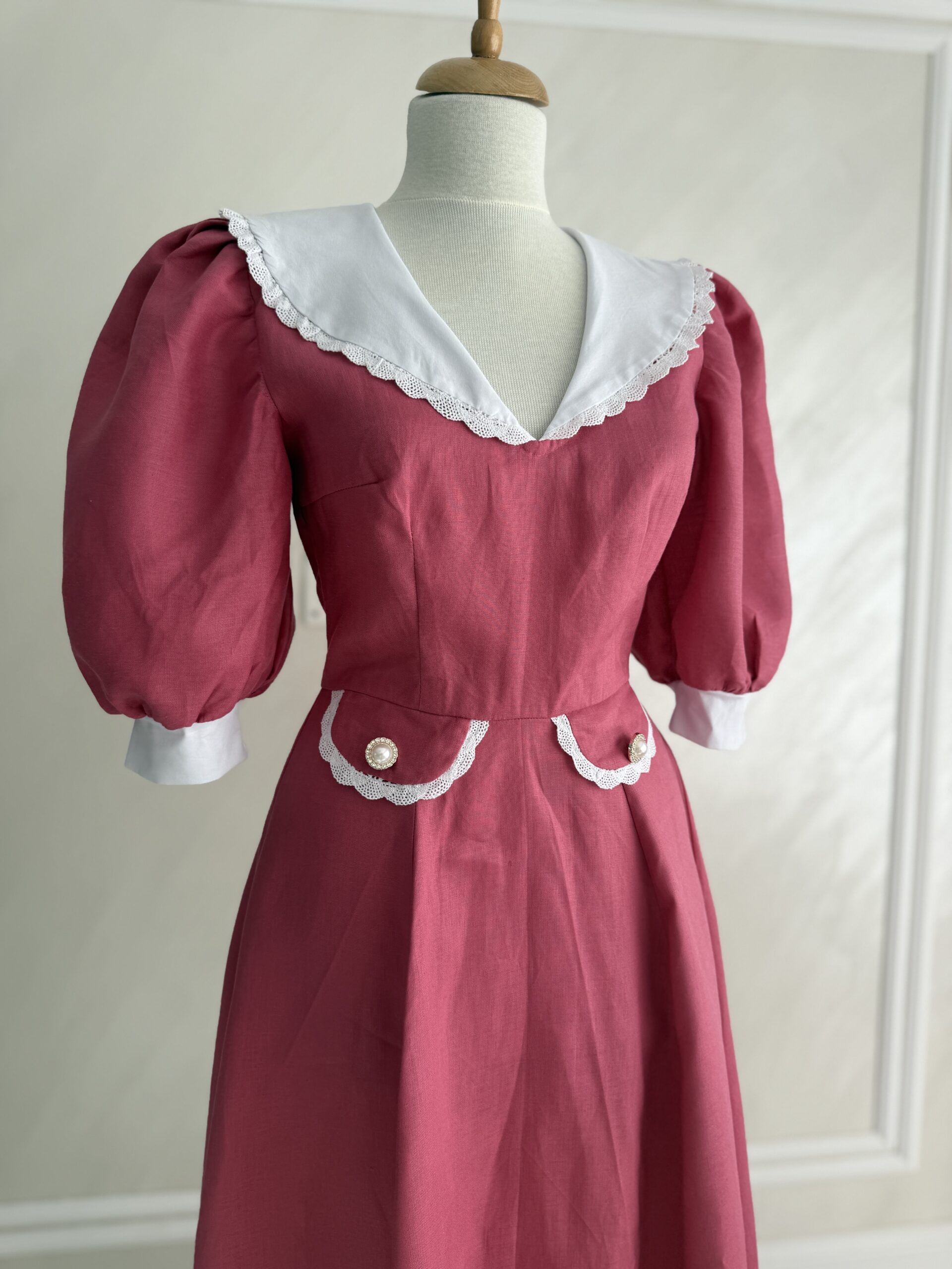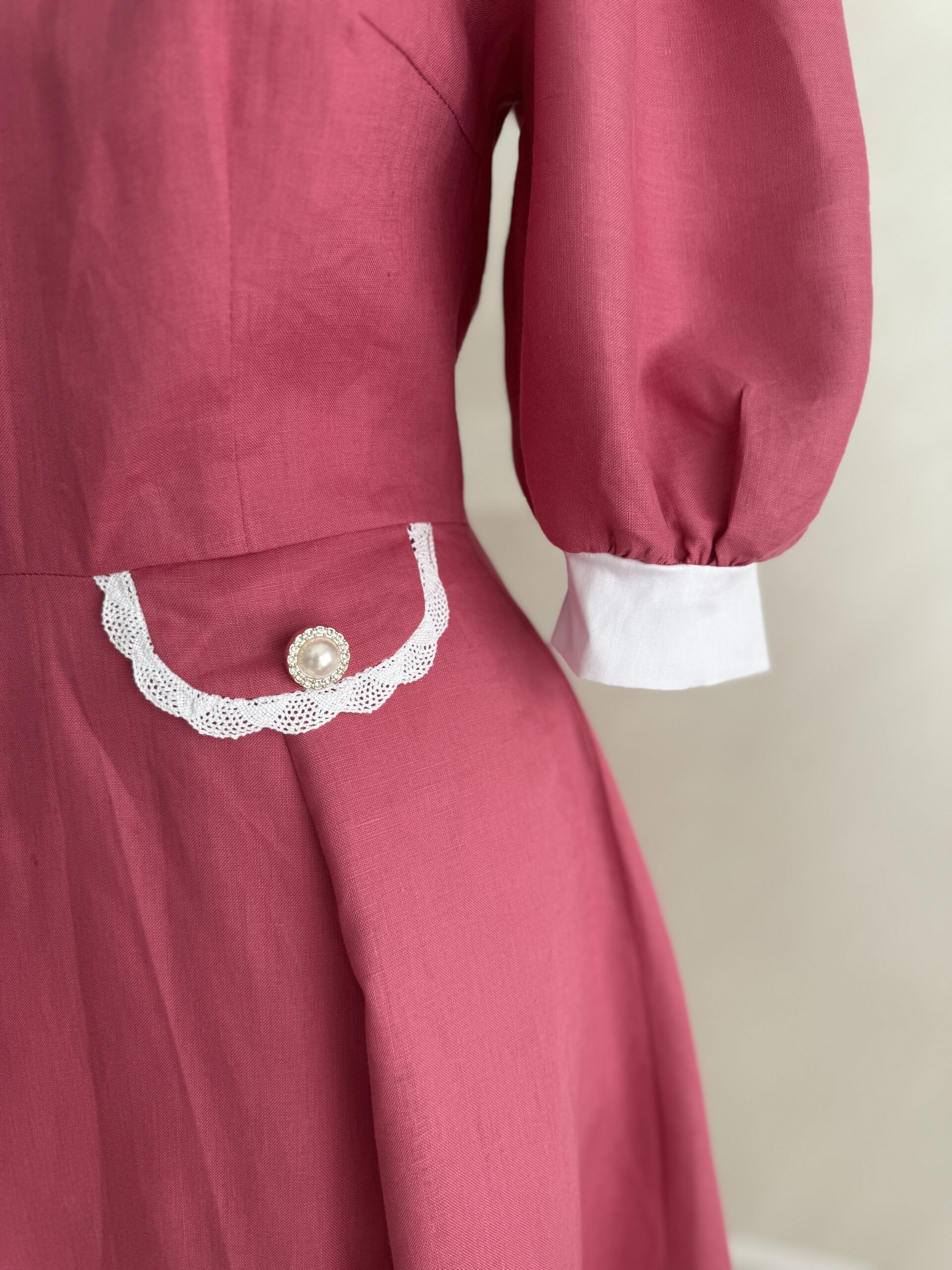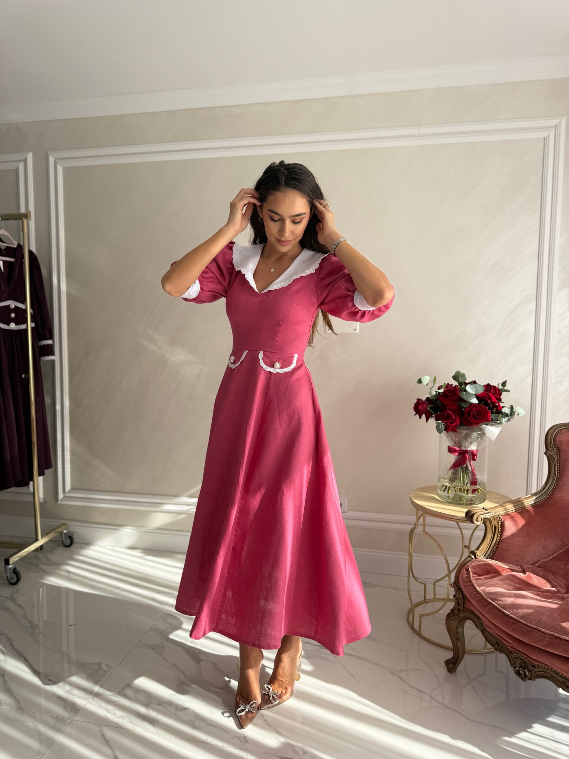 - Decolteu in V cu guler alb din bumbac alb si bordura de dantela
