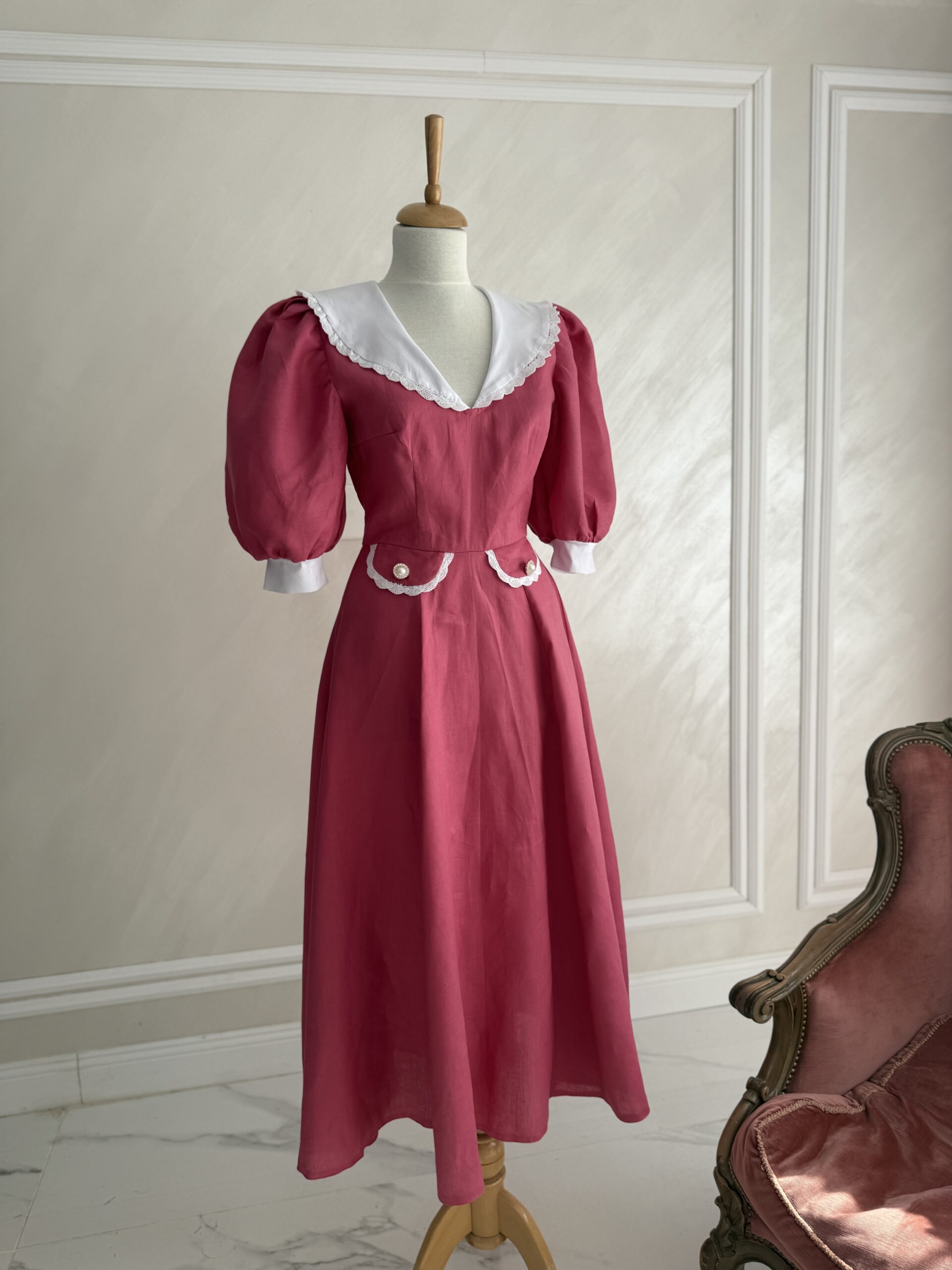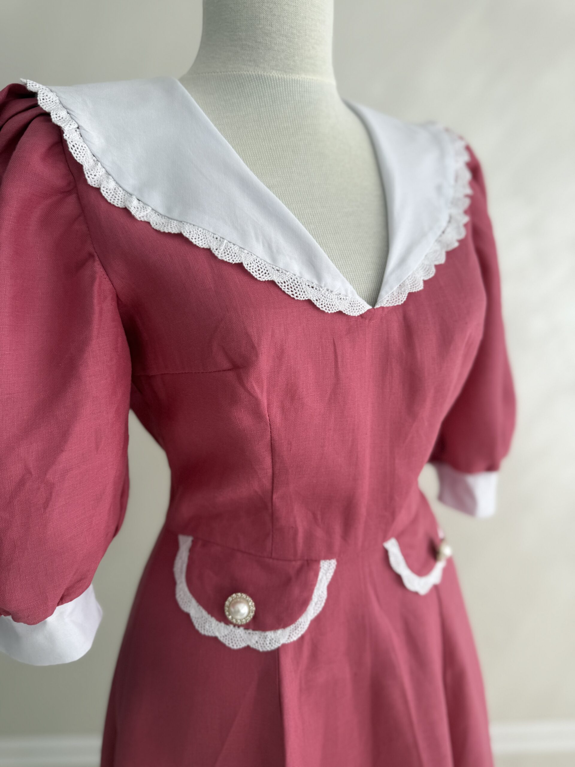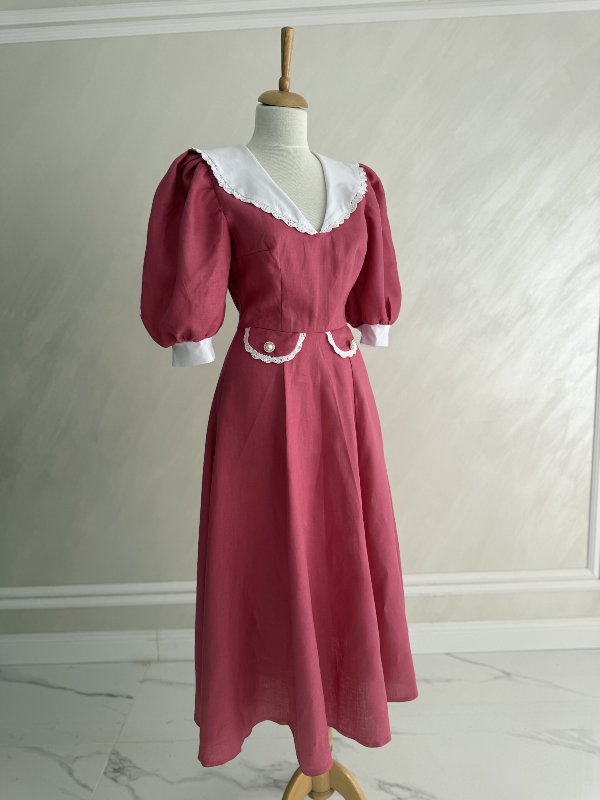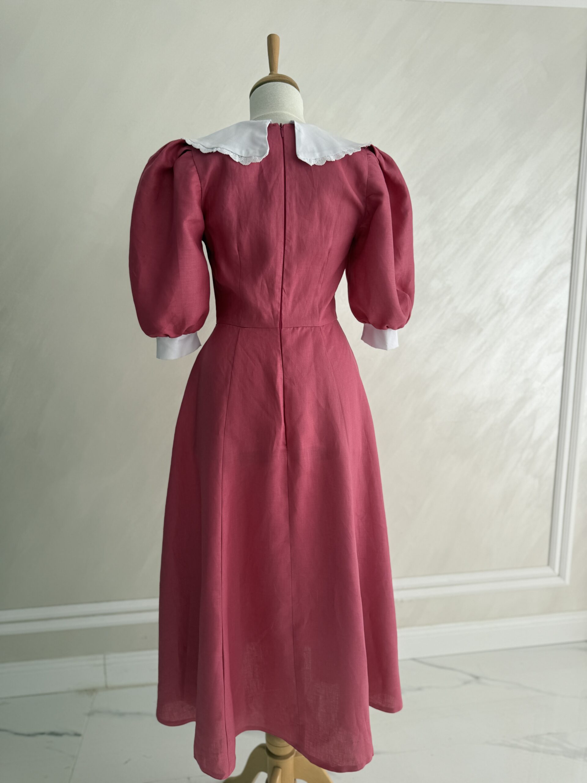 - Decolteu in V cu guler alb din bumbac alb si bordura de dantela